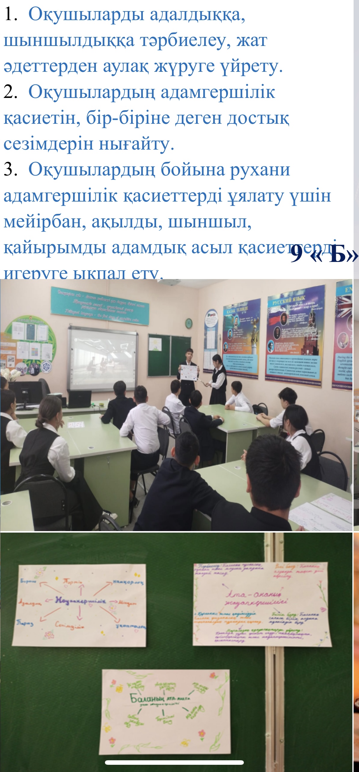 2025 жылдың 4 қараша күні "№41 жалпы орта білім берен мектебі"коммуналдық мекемесінің 9"Б" сыныбында "Әділдік пен жауапкершілік басты ұстаным" тақырыбында сынып сағаты өтті.